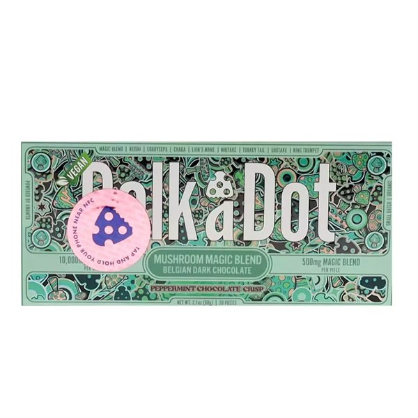 Immerse yourself in the refreshing and mystical fusion of Peppermint Chocolate Crisp Polka Dot Magic Mushroom Belgian Dark Chocolate. Order now from our online polkadot shroom shop and elevate your chocolate indulgence to new heights.